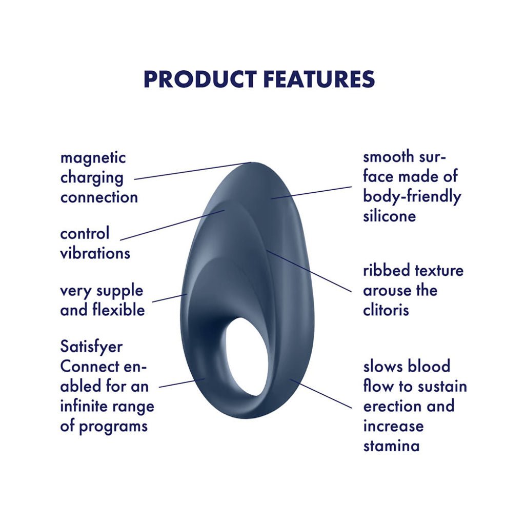 The Satisfyer Mighty One is a cock ring that gives you the erection you need for hours of pleasure. The stylish design flatters not only our manhood but also your partner’s clit with its smooth silicone surface. Thanks to the wide clitoral stimulator. you both can enjoy breathtaking vibrations. You can control them from the control panel or with the innovative Satisfyer Connect App. The Satisfyer Mighty One is equipped with integrated rechargeable batteries and can be recharged in an environmentally friendly way in a short time via a USB magnetic charging cable.