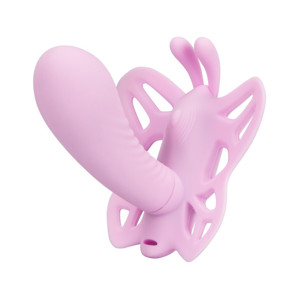 Prepare to be thrusted into a world of full-contact stimulation with the Venus Butterfly Silicone Remote Venus G. The now world-famous Venus Butterfly collection has done it again with an intimately contoured shape. pliable G-spot Massager and 12 intense functions of vibration. Spread your wings and tease on-the-go with the ravishing remote control range of up to 32.5 feet (10m) away! While the sensually curved vibrator deliver knee-shaking G-spot stimulation. the contoured butterfly hugs close to your body for external teasing.
